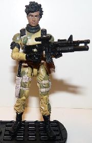 Cheetah - Jungle Vehicle Ops - An excuse to make quick use of a spare DVD Stalker body. Stalker was renamed Cheetah in Argentina. He was meant to be the first in a team of jungle ops characters that I haven't gotten around to finishing yet. Cheetah's head is a bit cartoonier than I might normally use. At first, I used a more clean cut head with a removable beret, but I found myself wishing I could make him look a bit wilder, and I imagined pretty much this exact hairstyle. Then I saw the Dragonball figure and couldn't pass it up.