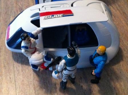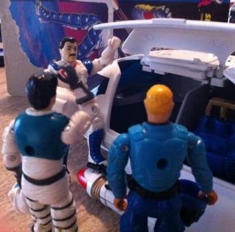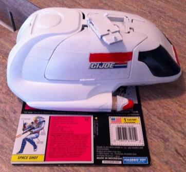 I used an old Galoob Shuttle-craft to make a awesome Star Brigade fast attack vehicle. also, To pay a little homage to Spaceshot for being one of the last non-repaint figures.