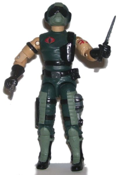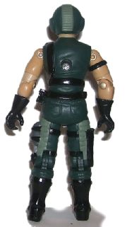 This is my second custom of Copperhead. One thing that I wanted to change was the color selection for his uniform. The original colors were too dark to make out a lot of the details. I opted to go with a light green to replace some of the dark grey and blue. I also decided that I wanted the figure to have removable knife and pistol. I opted for a revolver and an over-sized Bowie type of knife. I also thought it would be cool to give him a pointless leather strap on his upper arm like the original. I also wanted to hint at his past, so I decided to write Cobra in Japanese on his left upper arm as a tattoo, to represent his time in Japan racing speed boats. I also attempted to hint at his southern roots by using the Cross Country middle piece, but I was unable to get the proper look for the Confederate Flag on the buckle.