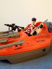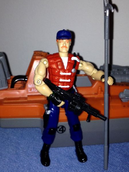 Fairly straight forward custom; I made Cutter so I could have a dedicated driver for my Devilfish. I modified the vest to include a pocket and inflation tube. Added a phone to his belt and touched up the legs. I was originally going to use Tunnel Rat legs because of the sailor pant look but went with the Dogfight legs. The Dogfight legs had the perfect color and the boots were a nice mold. Cutter is geared up with a Marauder grenade launcher and a gaffe from POC Shipwreck