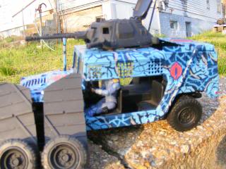 My goal for Cobra urban forces is to make them stand out like a sore thumb. If no one sees you they can not be terrorized. I want the population to be able to spot a Cobra Urban Attack vehicle from several blocks away and be able to easily identify it as being part of Cobra so they can run and run fast and far.A terrorist organization's biggest strength is to be able to strike terror into the hearts of masses. If they can turn people and make them run before they even get close it makes for much less resistance. I believe this is why the original Alley Viper had a safety orange jumpsuit with electric blue camo. Because Cobra wanted everyone to see them coming and run.