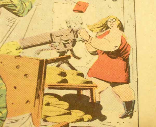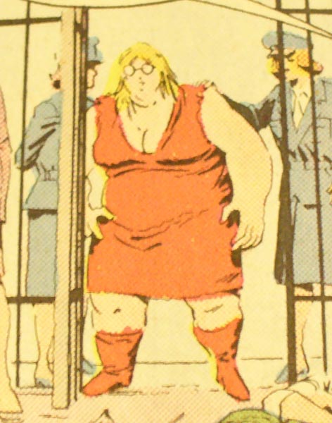 This character, whose real name was not even revealed, appeared in Marvel's GI Joe #50 Special Missions Preview. She was a member of the Leon Trotsky Brigade of the Fourth International. She was captured by Stalker and Hawk when they rushed the LTBOTFI headquarters in San Francisco. Upon entering the building, Hawk designated her as "Fatso with the machine gun".