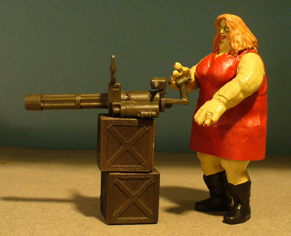 My biggest disappointment with the figure is that I had to use a ROC Heavy Duty machine gun. I couldn't find a 1:18 scale Browning to match the comic book. It's almost as funny without the antique weapon, and it still looks pretty good.