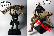 I sculpted this figure's head out of Green Stuff and painted it to suit, after seeing what an abysmal disaster the official 3.75" Bane toys were. The only modification is to the head. All other parts are stock "Battle Kata Roadblock." I considered using some sleeveless arms, but I was not certain I would be able to find a model with the correct proportions, as the Roadblock figures are significantly larger than other GI Joes.