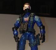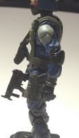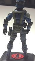 I am by no means an expert, but I've gotten back into customizing, and this time, I really want to work on effective uses of paint and minor mods like the holster on his left thigh. He's dusted with a clear coat to keep the paint fresh. By the way, custom action figure stand uses Franklin MS Gothic Demi 10 point font, bold, italicized, with some regular glue on the back.