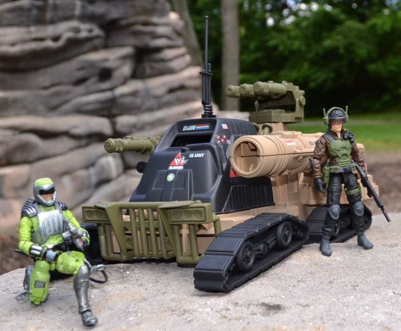 Part of this project was to emulate Hasbro's past of doing mail away vehicles. In deciding which vehicles to use, it was important to try and keep things fresh. When looking through the toy history we asked which vehicles that we have not seen reissued would we want to see again? One vehicle stood out as unique and perhaps forgotten, the Patriot. It was decided to raise this vehicle from the dead, but not as the Patriot, it would instead be renamed Slugger, as an homage to one of the earliest GI Joe toys and it would be paired with a modern version of Thunder to make it complete.