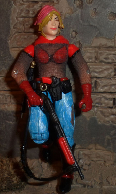 The Dreadnok member known as Zarana has a history of very few confirmed facts. The little bit that is known about Zarana comes from several intelligence agencies. It is generally accepted that Zarana is the sister to Zartan, the leader of the Dreadnoks, and Zandar her other sibling involved with the Dreadnoks. It is believed that Zarana and her brothers were all born in France. The siblings were placed in a Catholic orphanage at a young age. When Zarana was approximately 14 the siblings were separated. It is believed that Zartan, the oldest of the siblings, killed a bully that had been tormenting Zandar. Soon after Zartan was taken into custody, Zandar and Zarana escaped. While on the streets of Toulon, France Zarana learned how to use make up and costume to pass as an older women to help her and Zandar survive.