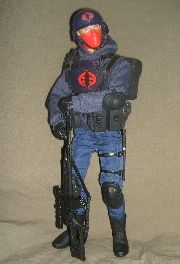 I have pulled my box of custom Cobra figures from storage and I thought I might have a bit of fun showing off an attack team I assembled made from 12" figures. A single soldier does not make a formidable impression and I was able to pick up several of the basic (2008) Cobra Troopers on sale. I know these cannot compare with the Troopers offered by Sideshow, but they are shelf-worthy in my collection. I will try to submit about one a week and give a construction detail or two with each.