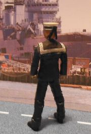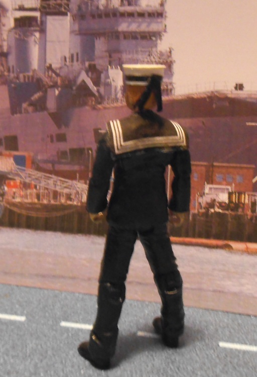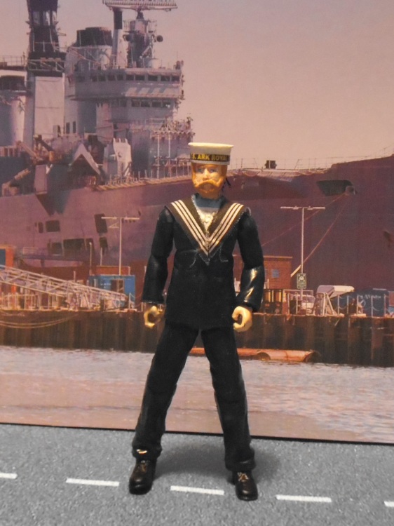 This is a figure I have had planned for quite a while. With my father having been an engineering officer in the Merchant Nay and Royal Navy reserve, this one was a must-do. It is based on the 'square-rig' uniform that was introduced by the Royal Navy in the 19th century. Plaitoy issued 5 different cap bands: HMS Victory, HMS Ark Royal, HMS Fearless, HMS Dreadnought and HMS Raleigh. I have gone with HMS Ark Royal, the ship responsible for damaging and disabling the Bismark. The uniform colour is atually dark blue. Doesn't show up too well in the photos.