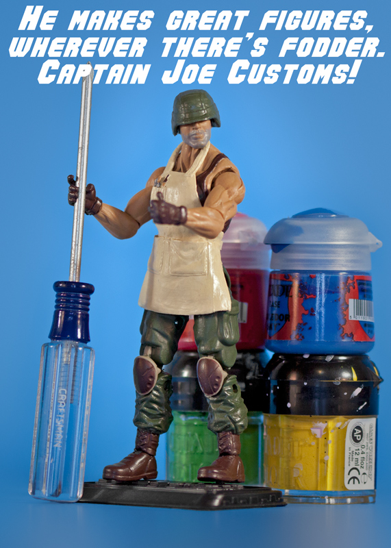 This was my entry into the joecustoms.com mascot design contest. I was pretty happy with how he came out, but he went up against some really great competition. I think the biggest reason he didn't do better is because a lot of the entries went wild with the accessories in addition to wonderful character designs, and the Captain just look a little empty handed in comparison.