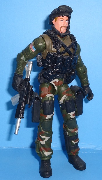 I set out to have unmasked versions of everybody on the GI Joe team except for Snake Eyes. I finally found a parts combo that I was happy with and then it was just a matter of finding the paint scheme. I based the design of the figure off of the 2nd version of Beachhead and used the 1st version as inspiration for the colors. I don't have a specific function for Beachhead in my Joe-verse but it is one character that I think is necessary in every collection.