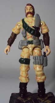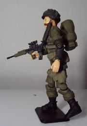 I look at Ambush and I see a british commando from WWII. So this custom is a figure from WWII. The assault rifle is a modern SA-85A1 from marauder inc. The knife is from a Chinese bootleg an the pistol is a Sig Sauer marauder inc. The backpack is a accessory pack Airborne that is very similar to the ranger's backpack f used in D Day. The color scheme is WWII, including the sleeves Fleece Sweatshirt under the uniform. The helmet is from Footloose v1.