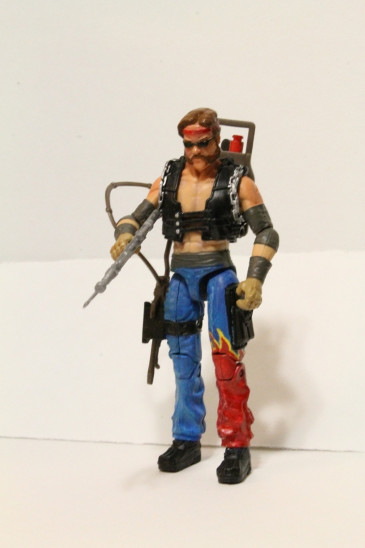 The first time I painted the flame I copied Hasbro's, but it didn't look "real" so i repainted the legs blue, dry brushed them grey, then dry brushed the flame on there, so it would look like it was paint on denim as opposed to paint on plastic.