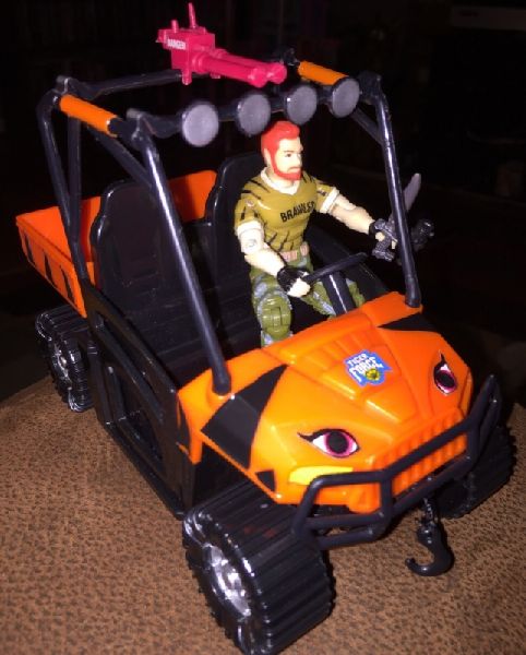 Deep in the jungle, GI Joe Tiger Force team member Outback is traveling over broken trails, through streams, and into the thick of overgrown vegetation in search of Cobra using the new Tiger Cart UTV.