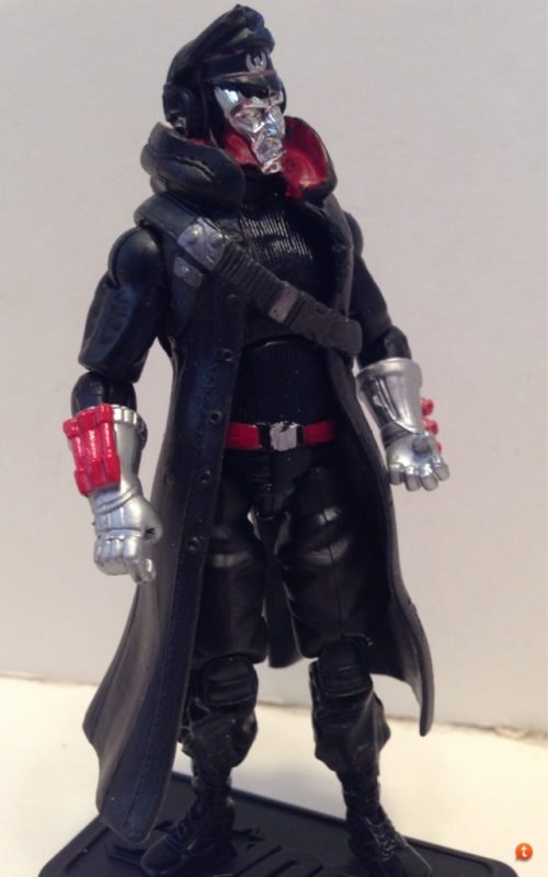 This was done as a part of Custom Celebration VIII. Bucky held a contest to make select figures in the Pursuit of Cobra Style. This posed a problem for me, as I prefer to do my GI Joe characters in classic style using vintage parts. I was going to let this part of the Celebration slide, until late one night, I had an idea how I could pull the look off. I was pleased that I was able to use several parts from actual Destro figures, and how the coat echoed the big collar of the original figure. It was the hat that really nailed his look for me though. I'd had that hat forever, but it was too small to use on most customs. Luckily, inexplicably, it fit on the Destro head pretty well.