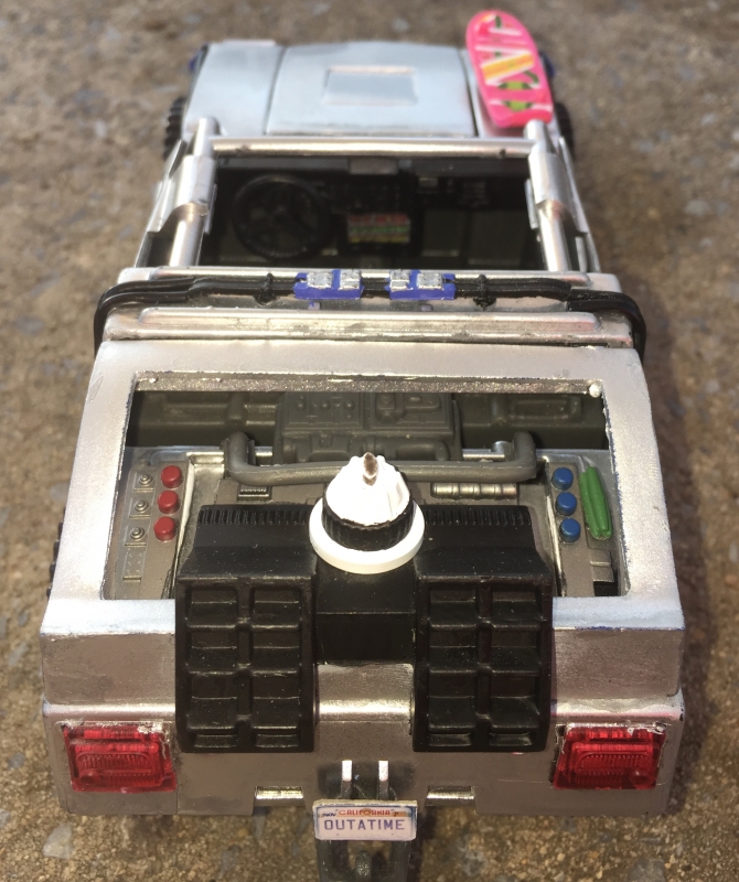 I started this two days before the JoeCustoms customizing class at Codename Iowa's Assembly Required. The idea was to show an alternative way to use the kit parts. Something about the spoiler HypnoHustler and nova did said time machine to me. While brainstorming how to do the vents on the back, I realized the easiest thing to do was cannonablize the minimates car.