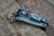 The Cobra EEL are one of my favorite all time Cobra Troops. I really wanted to build a boat for them, something they could use in there underwater demolitions jobs. I also wanted it to be small but also something they could dive off of. To me the Polar Battle Bear looks kind of like a stretched out Sea Do so I thought it was the perfect starting point. When I placed it on a Moccasin hull it was the perfect fit. I used styrene to build out the sides around the body and added the Armadillo grab bar on the back. This helps it look like they could sit on the back and dive off. It also has storage on the sides for the EELS dive equipment and weapons. The boat itself has a small front mounted gun and four small missile launchers.