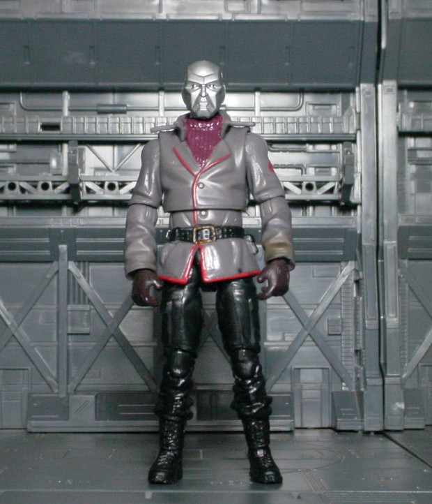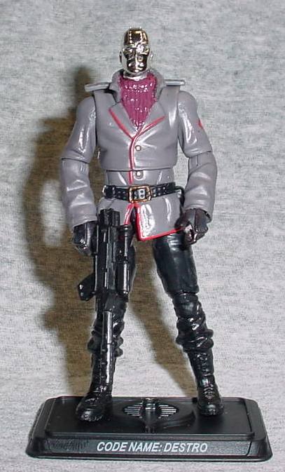 When the "Rise of Cobra" figure line was released I wanted to make a modern version of the Valor Vs Venom Destro. The Valor Vs Venom head was a touch small, so I tried customizing the ROC head. I resculpted the brow and repainted the ROC Destro the whole head. I had tried to sculpt on the raised strip and rivets like on the Valor Vs Venom head, but I failed. In the end I like the 50th Destro head for him!