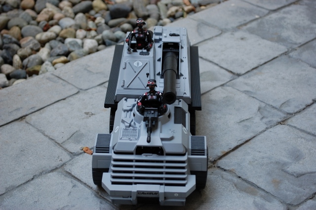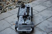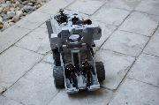 This one was a fun build. I really wanted to attach the two halves of the Mean Dog together but I just wasn't sure what to put on the back half. After I tried a few other things I realized the Slugger top was the perfect size. Basically I attached the two halves together with a piece of plastic across the bottom then I cut pieces to fill in the open areas. I also built a whole new platform for the Slugger top to sit on. I like the funky look of the wide front wheels it gives it an aggressive look. It's painted German grey and black with white stickers.