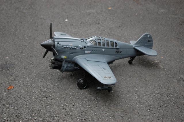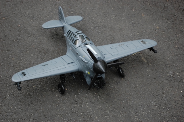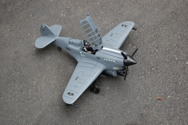 If you don't already know I will tell you again, I love World War two vehicles. This is a Sgt. Savage P 40 Warhawk I got for cheep. It's pretty cool even with the cheesy over sized front gun on the bottom. All i did was paint in Tamiya German Luftwaffe Grey and add a Fang seat in the cab so the ARAH figures would fit. I also added a Polar Battle Bear steering wheel for flight controls. I anointed the propeller and bombs black and added black Cobra Air Force logos. The hardest part of this custom was removing the stickers they were a major pain.
