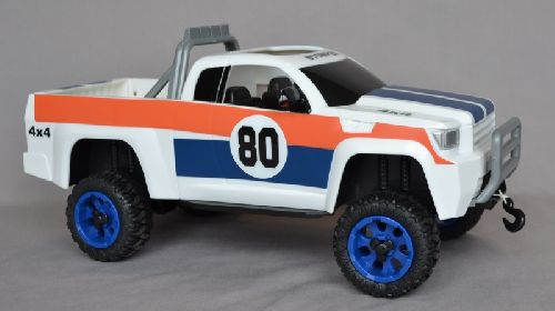 Stomper trucks were awesome. It's just that simple. I still have some from when I was a kid and for me the Stomper truck Happy Meal toys were the best toy McDonald's ever offered, even without them being motorized. They may be the only Happy Meal toys I saved from childhood and my son plays with them today. I went with some striping and traditional 4x4 badging and added the 80 to represent the release year. The fact that my 4 year old son confiscated this and plays with it daily attests to the desireability this toy had.
