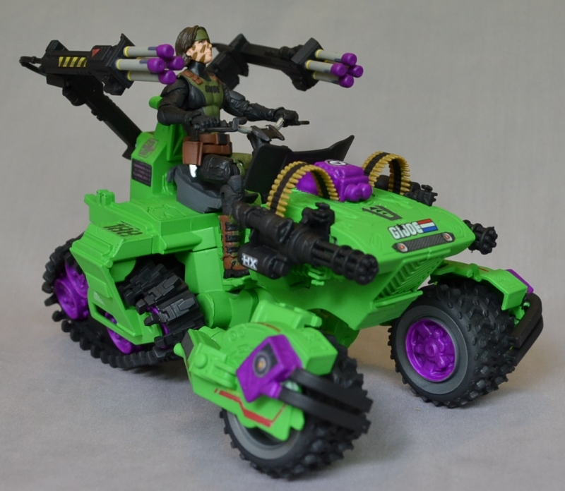 "GI JOE is on the attack with the SWAMPMASHER! Features unique free-rolling wheels and tread configuration, dual mounted missile launchers, forward mounted machine guns and more! Includes driver PIGSTY!"
