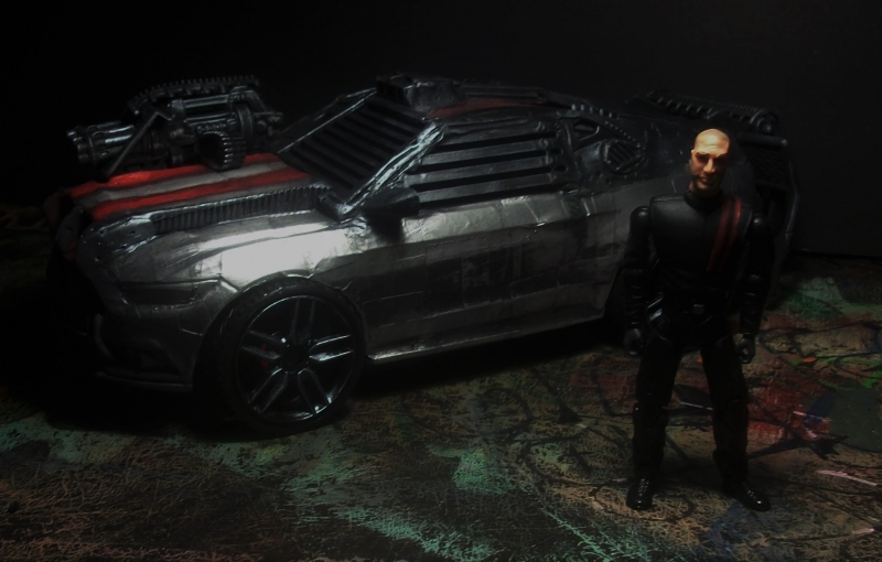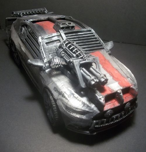 Frankenstein's Monster is a Mustang GT fastback with a V8 Roush 5.4 liter with a Ford Racing supercharger, a NOS unit, and armed with dual 30MM belt fed machine guns, napalm, oil slick, smokescreen, and a detachable rear 6" solid steel plate called the "The Tombstone".