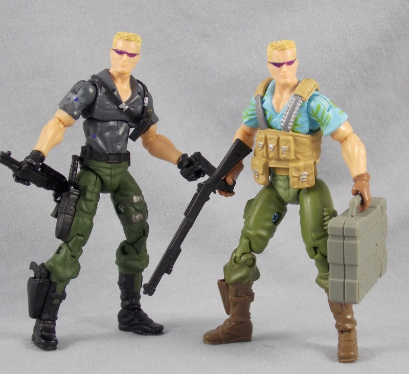 Chuckles was never one of my favorites. I was out of Joes by the time the original figure was released. Although it is dated, I was perfectly happy with the 25th version for my collection. When the LBC contest came around, I was playing with fodder and stumbled on an Avengers Hawkeye head. I dawned on me that it would make a cool head for Chuckles, so I went about updating the original figure by swapping parts only. After that, I pulled my old Night Force custom of the shelf, swapped the head and refreshed some of the paint. Now I have two fresher versions of the character.