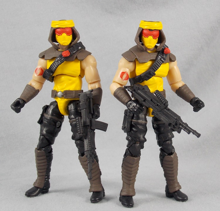 These figures were made for the GI Joe Resurgence II custom project and were late additions. Once we decided to include the Sand Wolf in the project, we needed a driver for it. I looked at yojoe and a couple of reference books to compare all the various Cobra desert troopers that had been made over the years. One of the options was the Sand Viper from the new sculpt years. In the end, I settled on the classic Desert Scorpion. Since I don't have the Club's version, I have had it on my to-do list for a while. I tried to stay as true to the original look as possible, including the colors.