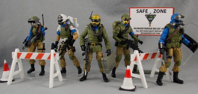 I started from this idea: ''The Steel Brigade is a paramilitary team that follows GI Joe into SWARM infested areas. The Steel Brigade is responsible for mopping up SWARM stragglers, securing and holding areas, law enforcement, crowd control and insuring relief efforts for the affected populations.'' I then set about creating team members that fit those roles.