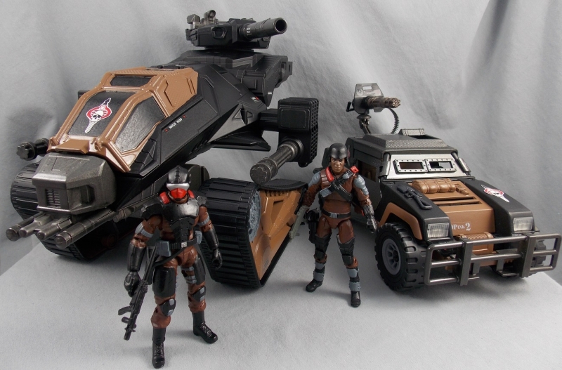 Every year, the Club offers a large vehicle to complement the convention set, so we wanted to do the same. I tried to avoid using a vehicle that the Club has already used, so I looked at the Retaliation HISS. I think that it complements the Skull Squad forces nicely. Since it already looks quite menacing, I only made a small modification on the front by adding a couple of extra guns. After that, it was only a matter of making the color distribution similar to the Skull Raider's and that was that.