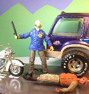 Back when I made the GI Joe Mobile Strike Force power cycle, Dark Jedi joked that I needed to make a Cartman from South Park custom to go with it. I put one together for the 2015 Custom Celebration, but didn't care for how the hat sat on the head and the paint kept chipping off the knees. So I went back and fixed the issues I had with it and did a proper photoshoot for the gallery submission. The one feature I really wanted was for the cap to be removable so you could see Eric's perfectly combed hair. Jaywalkers beware...