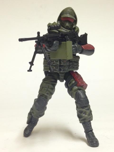 This custom build was a pretty simple modernisation of Wheels, but I tried to add in a few nods to the original figure: The red pouches; red goggles lens's; combat knife on the rear of his web belt; green; and black & red colour scheme.