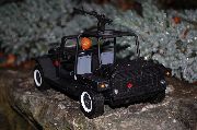 Found this busted up Power Team Elite jeep at a thrift store one day. It came in a huge bag with a set of helicopter blades I wanted. I probably had it for a year and had forgotten all about it till I found it one day. I was just gong to donate back to the store. I put it in a big box of stuff to take and I guess it somehow fell out in the back of the van. When I got home I saw it and this idea hit me. I guess it didn't want to go back. It's basically a straight repaint with a new front bumper and side mirrors. I am really glad it fell out of the box.