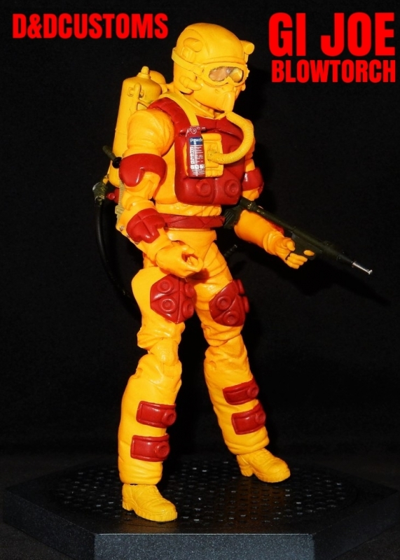 Custom sculpted and painted with professional non toxic sculpy and water based acrylic paints. D&DCUSTOMS PRESENTS - CUSTOM GI JOE MARVEL LEGENDS BLACK SERIES STYLE 6" 1:12th SCALE BLOWTORCH Flamethrower.