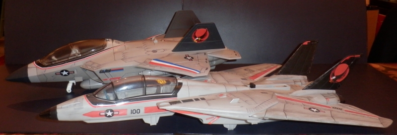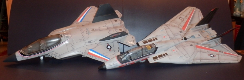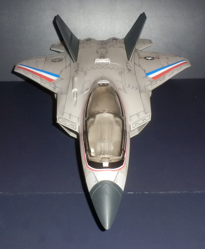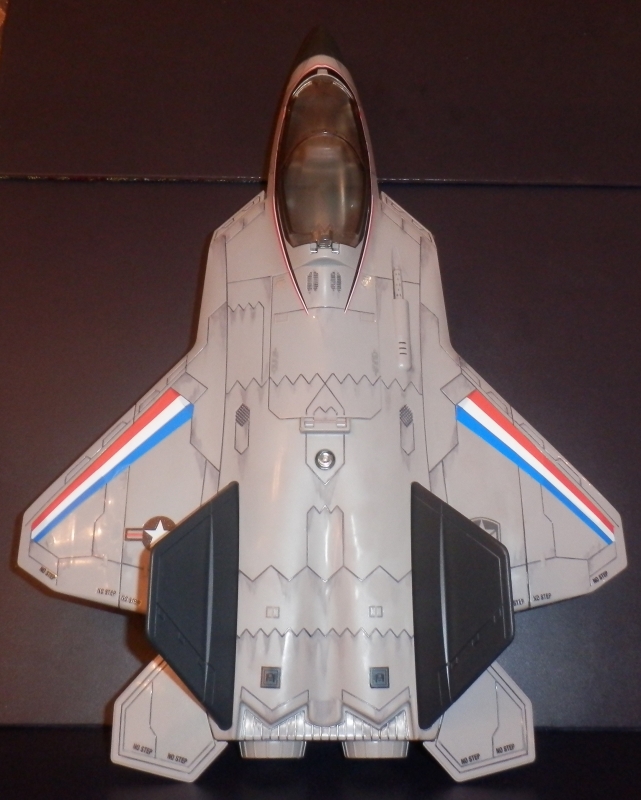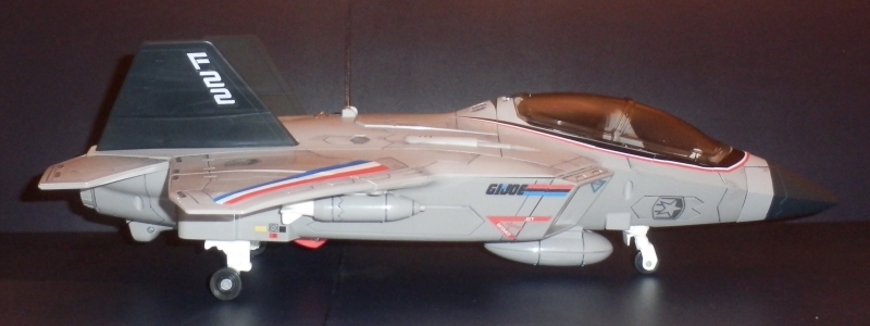 I acquired a Thunderwing prototype many, many years ago at a decent price, but it wasn't until I started customising GI Joe jets that it occurred to me over the holidays it was time to pull the Thunderwing out of storage and see what I could do with it. I ended up deciding to customise it into a straightforward Skystriker homage - the Thunderwing has a camo deco, so it was nice to have this version without any of the camo markings. The nose and tailfins were painted black, and the clear canopy was painted with smoky paint for clear plastic. After that, I bought Cobrastickers' F-22 Skystriker custom set of stickers - the stickers are intended for another F-22, so they needed to be trimmed a bit, but look quite nice on the Thunderwing.