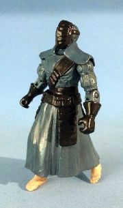 The faceplate, shoulder/neck padding, arm padding sculpted. The lower uniform area is the belt of NS Slice combined with the skirt of Cairo Henchman. The skirt is sculpted with as if the left knee is forward. Because the legs can't really move under the skirt, they are glued in position at the hips and the knees.