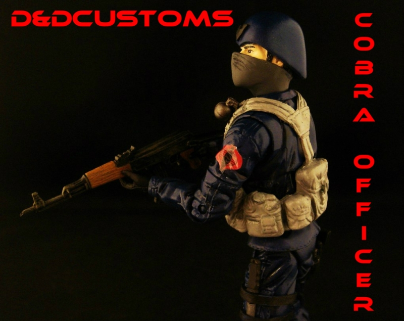 Custom sculpted and painted with professional non toxic sculpy and water based acrylic paints. D&DCUSTOMS PRESENTS - CUSTOM GI JOE MARVEL LEGENDS BLACK SERIES STYLE 6" 1:12th SCALE COBRA OFFICER Red Logo.