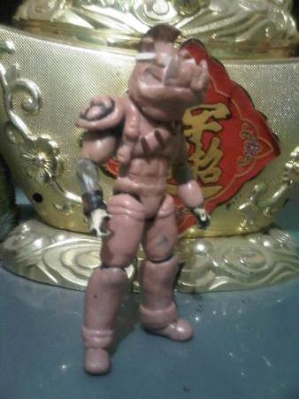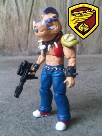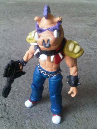 After I finished Rocksteady, of course I wanted to create Bebop next. But I knew I'm going to have to spend plenty of time working on it because it needed plenty of sculpting so, I prioritized working on some other figures on the work bench first. After a year or so, Rocksteady still doesn't have his partner. But when I'm all psyched up to finally create Bebop, I once again ran out of fodders. But I've found a 3.75" movie Captain America legs and MU Deadpool torso. With some sculpey magic, I hoped to make Bebop out of them. It took plenty of time but I finally did it. A Bebop figure, 90% sculpted.