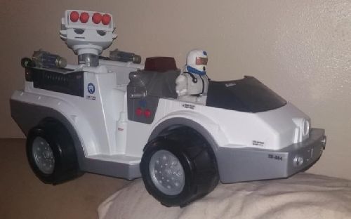 Sigma scale vehicles are a mixed bag to try to attempt, a single seated open cockpit compromise to the traditional design using a $7 rescue heroes find at a random thrift store only because the front end reminded me immediately of the Transformers ENERGON character Snowcat, I used Krylon fusion plastic paint to paint the white after taking dozens and dozens of screws out taking the frame apart, even though it looks like a simple Tonka construction.. removed all the electronics and gears, then found the nerf launcher in a bin of 1/6 joe parts at a comic book show.