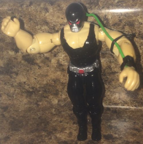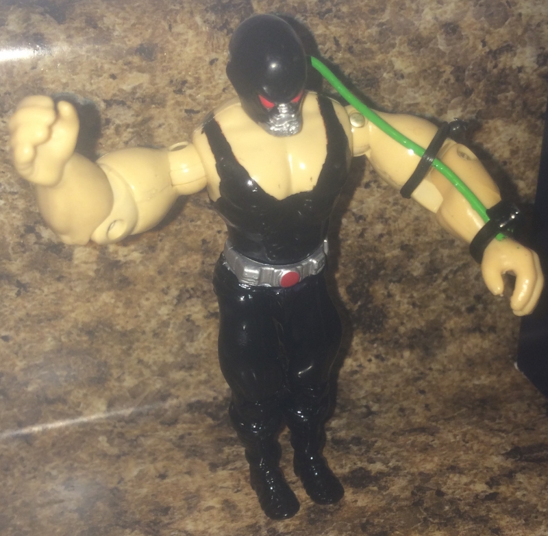 Croc Master's head has always reminded me of Bane. I had a broken E. Honda figure and wanted to use his arms on a normal sized GI Joe. The Bane character seemed appropriate. For the "Venom" tube, I painted a wire tie green.