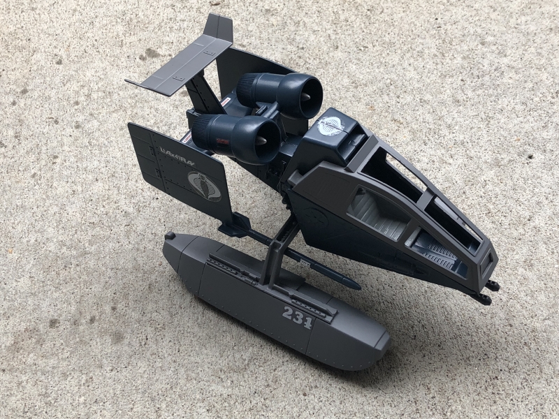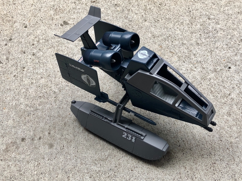 The Sky Hawk was always one of my favorites as a kid, and it still is. I have had this idea for awhile and when I found the pontoons I knew I had to build it. It's painted navy blue and grey and matches the rest of my Cobra Navy. I added a few stickers from Cobrastickers to give it a real classic look. I eventually will make a figure for this one as well. It does float a little bit then it sinks but it looks really cool doing it.