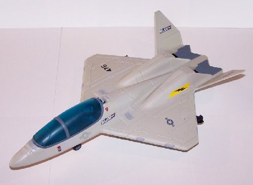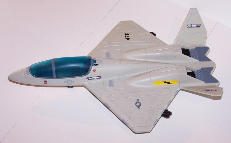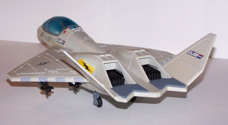The Storm Eagle is based on the YF-23 prototype which lost to the F-22 Raptor in the Advanced Tactical Fighter competition. The Storm Eagle is far too small to actually be a YF-23 in Joe scale. But we can assume that the USAF took the prototype and then reduced the size to make a light stealth fighter rather than a full-on air-superiority fighter like the F-22.