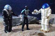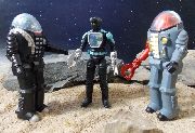Clawtron was released on a card and not part of any set. It was a franken-figure made up of parts from previous figures and a new paint scheme. As far as I know, no back-story was provided for the character so kids could make up their own. I imagine that Clawtron is one of the blue-skinned alien henchmen, a cyborg allied with Brainoid, doing his nefarious deeds. The custom itself is pretty simple. Most of the parts were already black, so it was just a matter of painting some details.