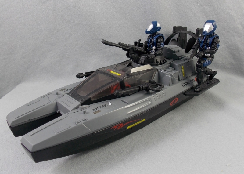 A night operations moccasin has a dual purpose. First, it is well equipped to patrol swamps and rivers at Cobra Island. Second, the dark colors make it an excellent craft for night infiltration missions and raids against ports and other marine facilities. It is heavily armed and can carry a couple of troops.