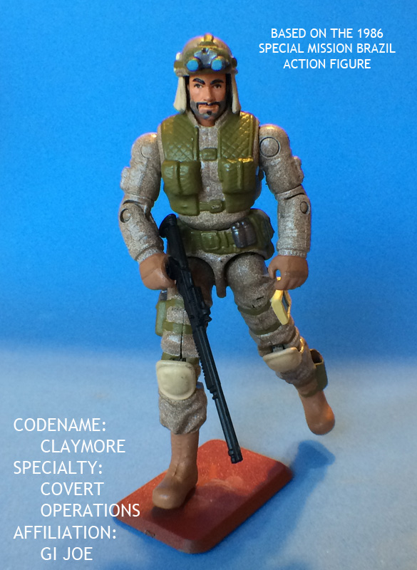 Claymore was originally included with the Special Mission Brazil set in 1986. The figure was made from parts of other figures, but was a new character.