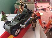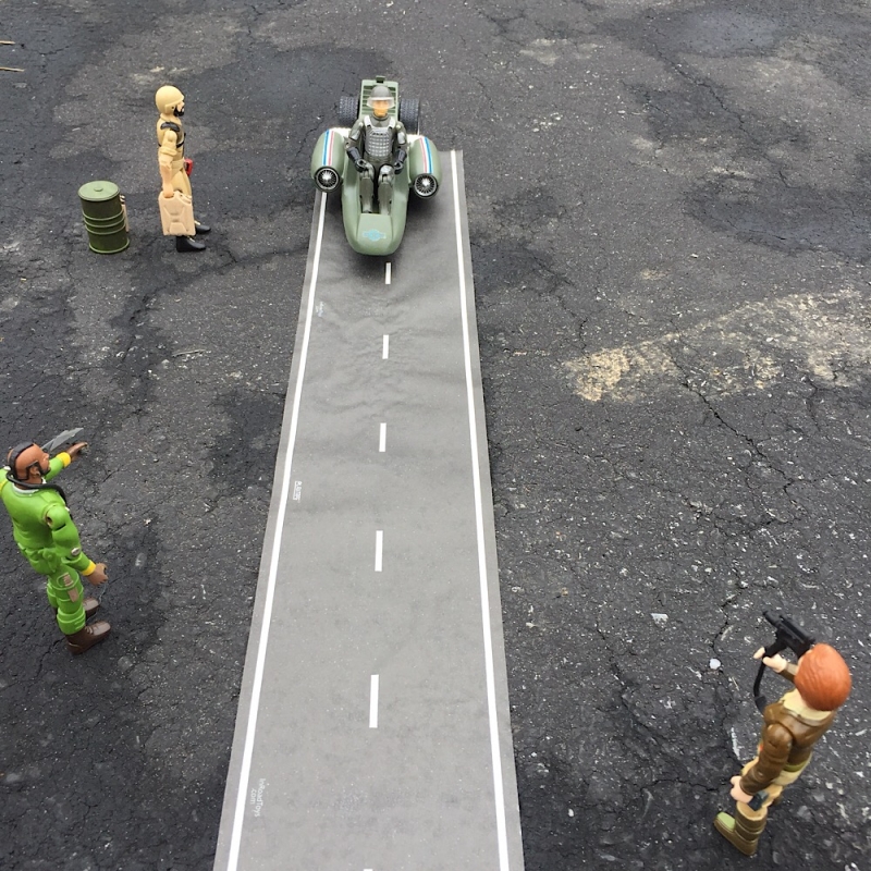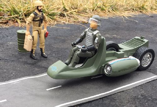 In Brazil, Estrella reworked Kenner's SSP Sidewinder, a zip pull car toy, as a Comamdos em Acao vehicle called the Torpedo. They painted it olive drab, gave it new stickers, removed the molded driver, and recut the front driver section to fit a GI Joe figure...sort of. The figure just kind of squats against the plastic with nothing really holding it in place. Someone posted a pic of one recently to discuss the unnamed driver. As soon as I saw the Torpedo I knew I had to make one. It has a very early GI Joe look to it and sort of looks like it might have been a precurser to the LCV recon sled.