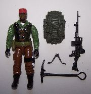 This custom is an ARAH version of the Sigma Six character Sgt. Boulder, who serves as a GI Joe mountain scout. I love me some Skidmark arms. I've used them in numerous customs already, and I thought it would add a little character to Boulder. The original figure just wore a plain shirt, but I used a torso with a tac vest so it would be more interesting. This figure actually uses front and back torso pieces from two different figures. It was a while ago, but if I remember correctly, what happened was that the screw hole cracked in the back piece, but I still wanted to use the front and didn't have another Mutt torso available, so I found another back that fit relatively well and then trimmed it down as needed.