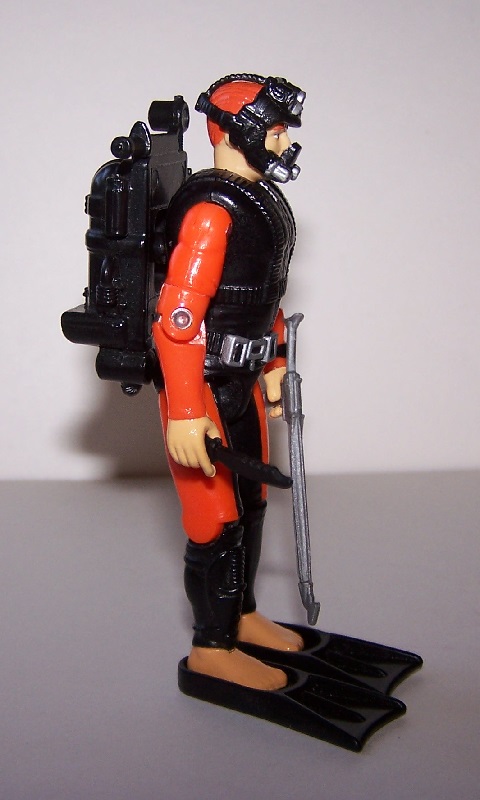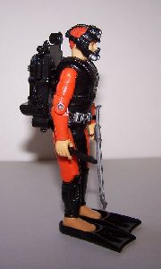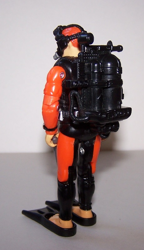 I wanted to make a basic SCUBA diver version of Deep Six, since he is rated as a Master Diver. This figure is pretty close to an LBC, since the body is made up of parts from both versions of the Action Sailor plus a Deep Six head, with only a few details being painted, including the eyes to give him something beyond orange blobs in the middle of his face. I think the two-tone colour scheme, especially on the upper legs, gives the figure a nice wetsuit look.