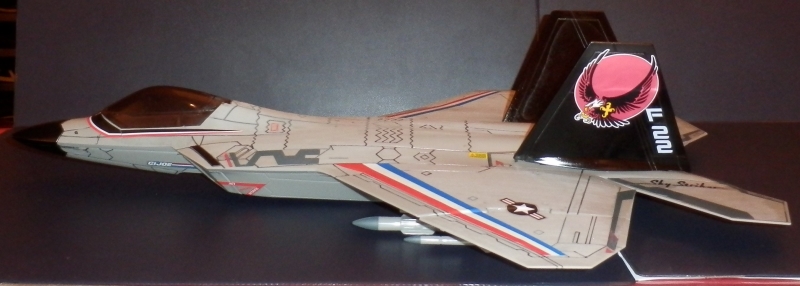 "As the GI Joe air superiority programme continued to develop, following the completion of the Lightning Striker project, the GI Joe team went back to the drawing board with the Thunderwing. Reconceptualising the stealth fighter as a conventional single seat stealth air superiority fighter, the Thunderwing II emerged as the new 'hi' in the 'hi-lo' force multiplier with the Lightning Striker!"